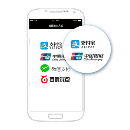 聚合易支付,为iOS/Android原生/H5 App提供支付解决方案:支持微信支付、支付宝支付、银联手机支付、百度钱包等。